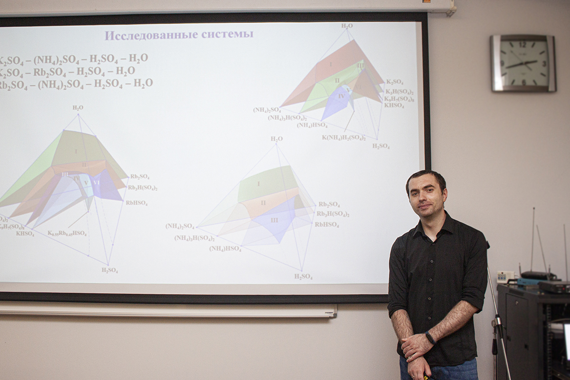 20 июля 2023 года в Институте кристаллографии им. А.В. Шубникова РАН ФНИЦ «Кристаллография и фотоника» РАН состоялся доклад И.С. Тимакова «Влияние изоморфного замещения на физико-химические свойства кислых сульфатов щелочных металлов».