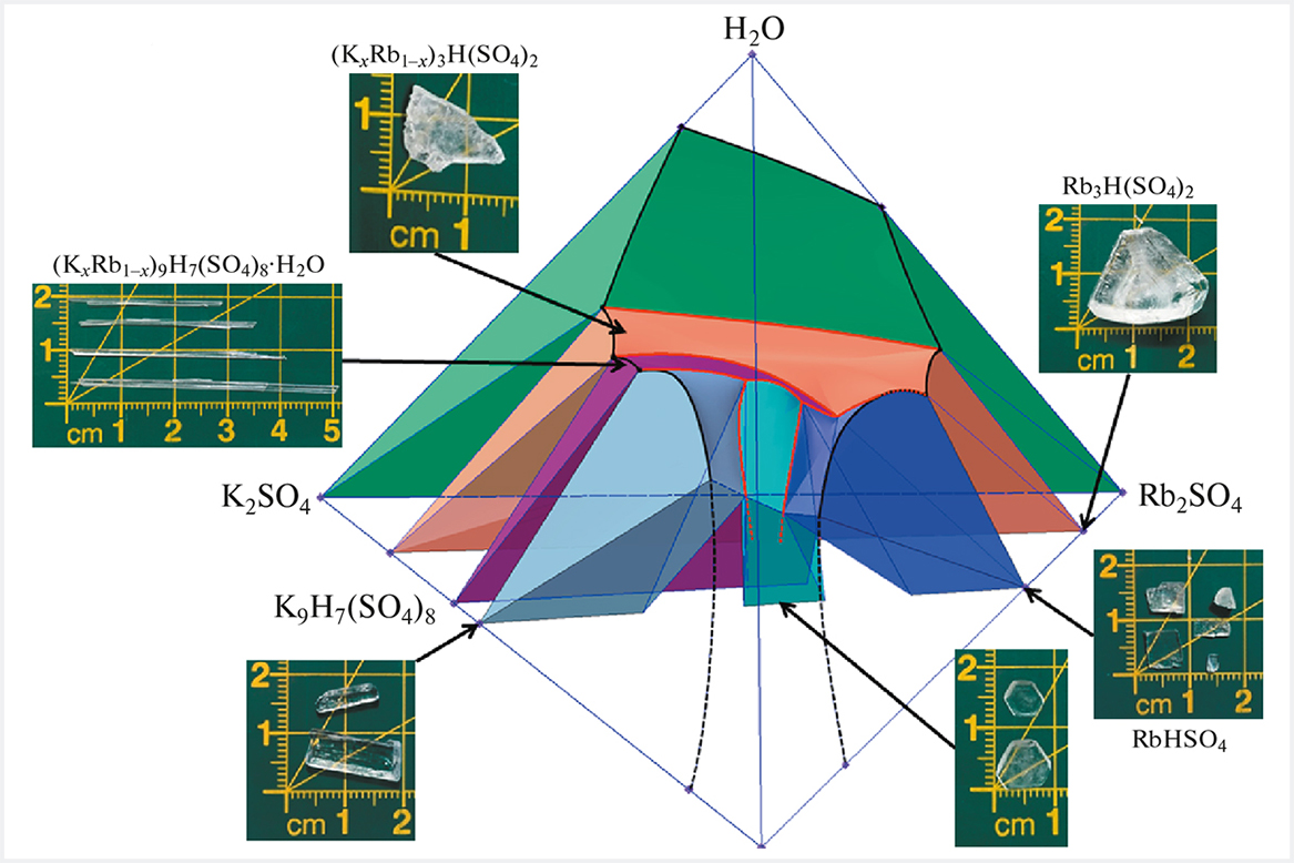 Исследования водно-солевых систем, в которых наблюдается существование как кислых солей, так и их твердых растворов, обусловлены поиском новых фаз с высокой протонной проводимостью крайне важны. Получение твердых растворов на основе несуществующих соединений открывает возможность создания различных видов разупорядочения, что является структурной причиной явления высокой протонной проводимости. Таким образом, появляется возможность создания новых материалов для водородной энергетики.